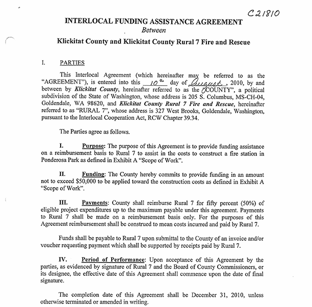 Klickitat Co. & Rural 7 Agreement